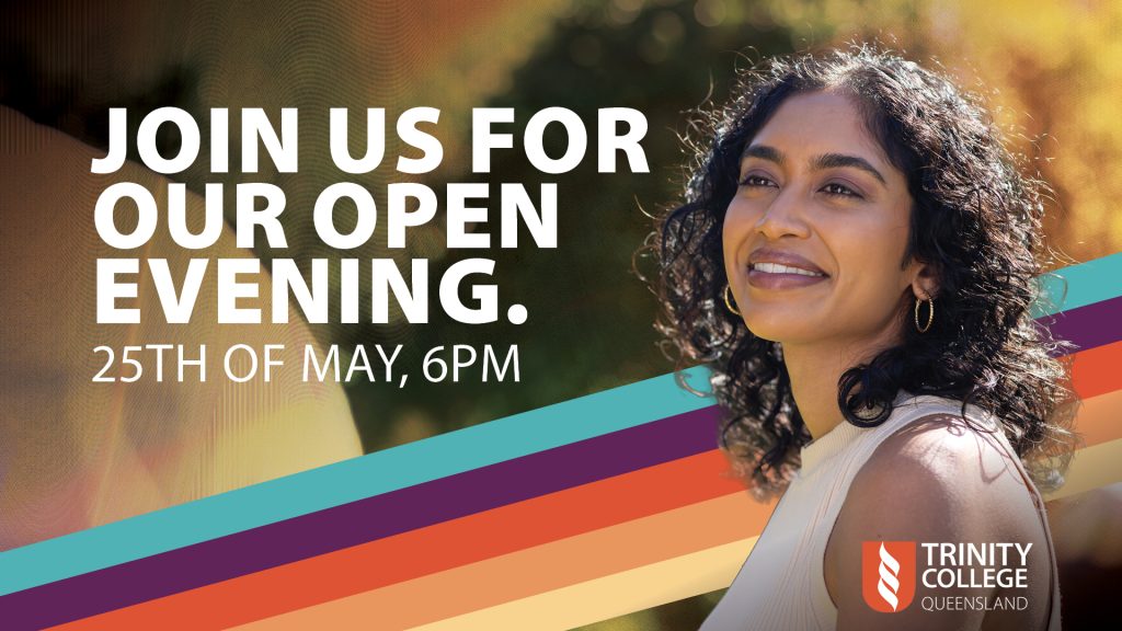 Trinity Open Evening is from 7-8:30pm on Monday 20 May at Trinity College, Level 1, 60 Bayliss St, Auchenflower. It’s easy to get to, and parking is underneath the building.